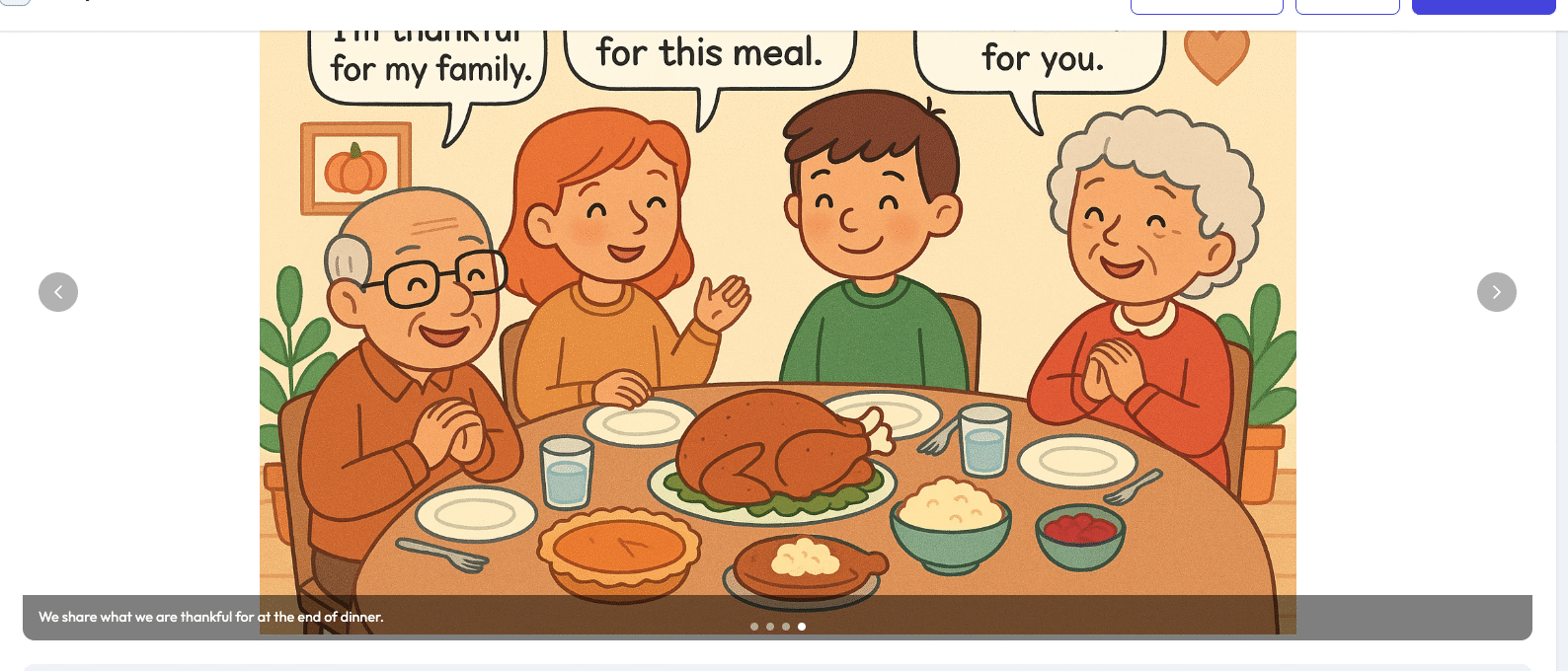 At the end of the story, there’s this beautiful line: “I learn that Thanksgiving is not just about eating but also about enjoying time with family and expressing gratitude.”